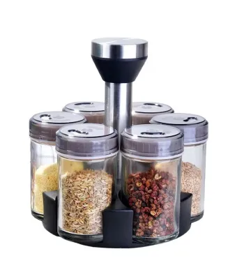 Un set ideal in orice bucatarie! Recipientele sunt fabricate din material de calitate superioara, pentru a asigura o maxima igiena si beneficiaza de finisaje deosebit de fine si de bine realizate. Recipientele sunt confectionate din plastic, cu filet pentru o buna etansare. Capacele sunt dotate cu 3 tipuri de gauri pentru dozare fina sau mare. Suportul se roteste 360′. suport rotativ ergonomic 6 recipiente + 1 suport rotativ cu maner pentru transport recipientele pentru condimente sunt realizate din plastic capacele au 3 tipuri de gauri dimensiune recipient: 115 x 40 mm sunt usor de folosit, de spalat si de curatat