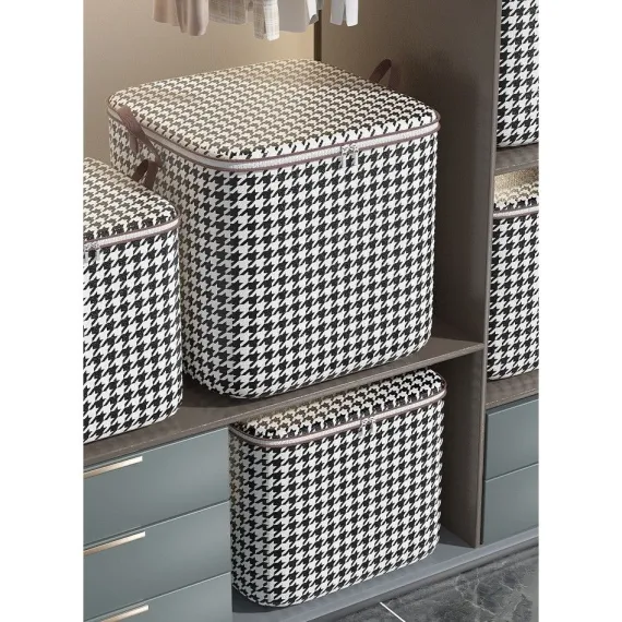 Cutie de Depozitare cu Fermoar, Pliabila, Maner Ranforsat, Fermoar Rezistent, pentru Haine, Paturi, Plapumi, Perne, Lenjerii de Pat, Jucarii, 40x50x50 cm, 100 Litri, in Carouri, Alb-Negru