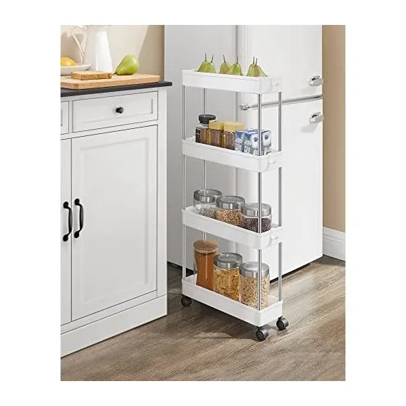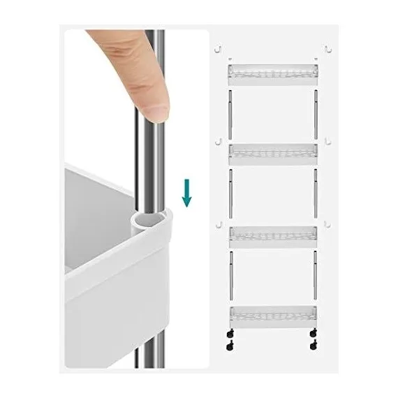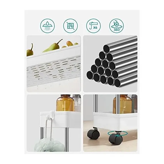 Usor de mutat cu roti - Datorita celor 4 roti pivotante netede, puteti muta caruciorul oriunde aveti nevoie, utilizand spatiul din colt pentru a organiza sticle de condimente sau articole de toaleta.